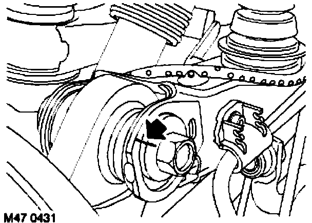 5. Align hub to upper arm, fit new bolt, align eccentric to reference mark and lightly tighten.