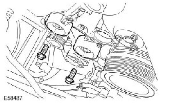 NOTE: 1 A/C compressor bolt will remain captive until the mounting bracket is removed.