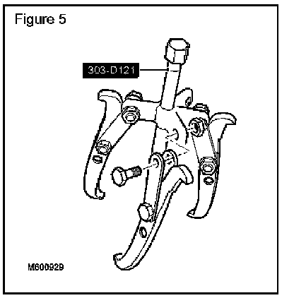 5. Configure special tool 303-D121 to two-leg mode or alternatively, use a suitable two-leg puller. (Figure 5)