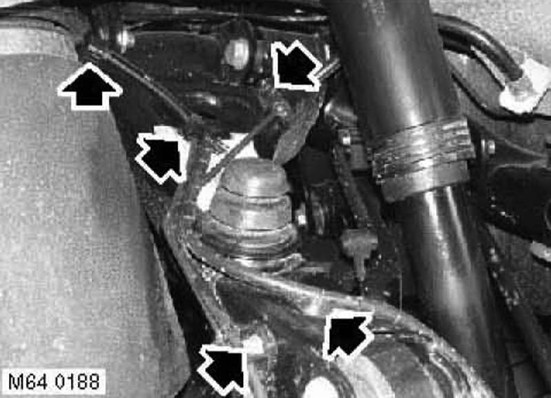 16. Lower subframe approximately 75 mm for access to bolts securing upper arm to subframe.
