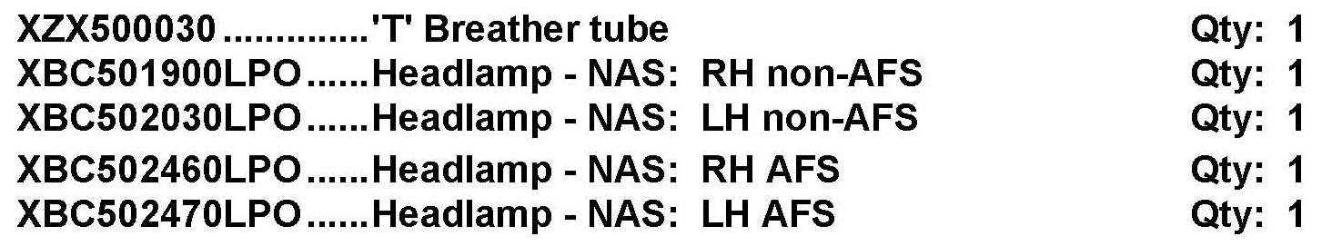 6. If no fault is found with the bulb-cover installation or breather tubes and water droplets remain on the inside of the headlamp(s), the effected headlamp(s) should be replaced.