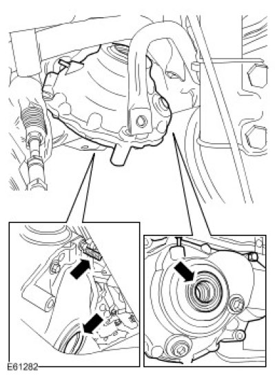 NOTE: The differential case is rotated by 90 degrees, and removed through the sub-frame with the halfshaft oil seal uppermost.