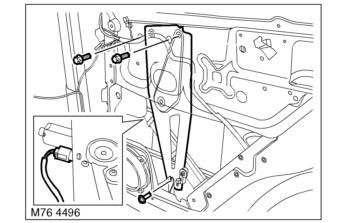 4. Remove 2 Torx bolts securing regulator to door frame and withdraw regulator through access panel.