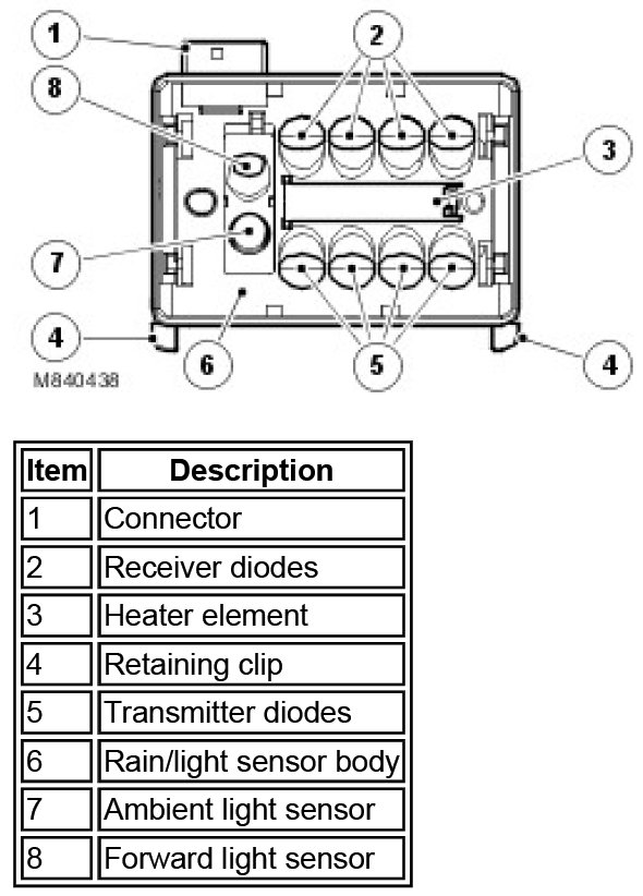 The sensor contains 4 transmitter and receiver diodes for increased sensitivity and also contains a light sensor for operation of the automatic headlamp function.