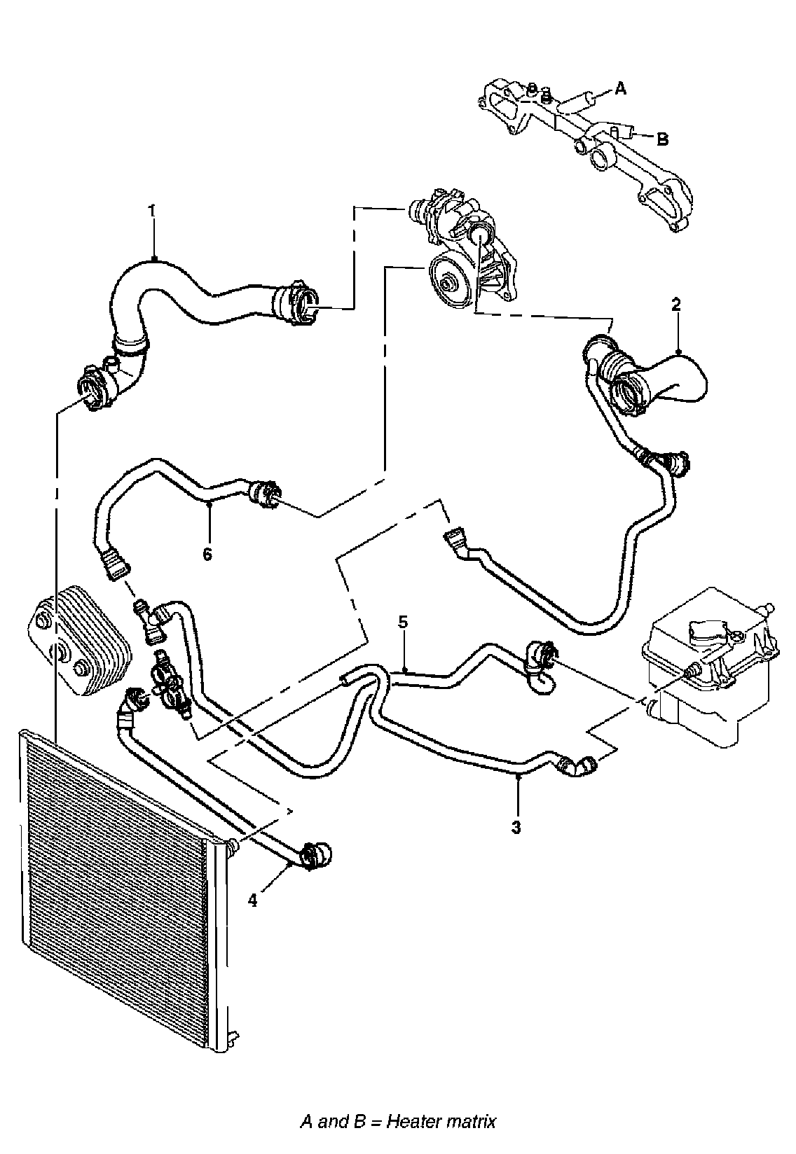With the engine running, the coolant pump pulley is driven by an ancillary drive belt. When the engine is cold, the thermostat is closed and coolant is prevented from circulating through the radiator. Coolant is able to circulate through the engine and the passenger compartment heater matrix via a thermostat bypass.