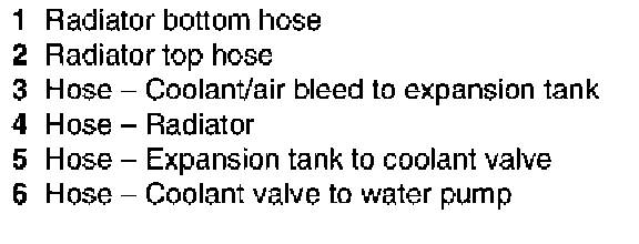 The increased coolant volume, created by heat expansion, is directed to the expansion tank through a bleed hose from the top of the radiator. The expansion tank has an outlet hose which is connected into the coolant circuit. This outlet hose returns the coolant to the system when the engine cools.