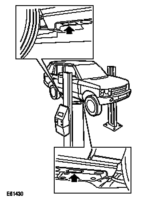 1. Position the vehicle with the centre of the lift pillars aligned approximately with the front of the driver/passenger seat cushions.