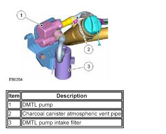 The DMTL system periodically checks the evaporative system and the fuel tank for leaks when the ignition is switched off. The DMTL pump is connected to the atmospheric vent of the charcoal cannister and incorporates a PTC (positive temperature coefficient) heating element a normally open valve and a reference orifice. The DMTL pump is only operate when the ignition is switched off and is controlled by the ECM (engine control module). The ECM (engine control module) also monitors the electric air pump operation and the normally open valve for faults. To check the fuel tank and EVAP system for leaks the ECM (engine control module) operates the DMTL pump and monitors the current draw. This is compared to a referenced figure established from the current draw when air is pumped through the reference orifice.