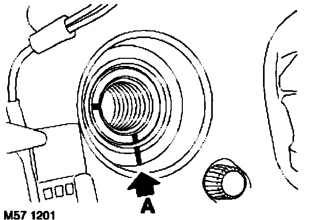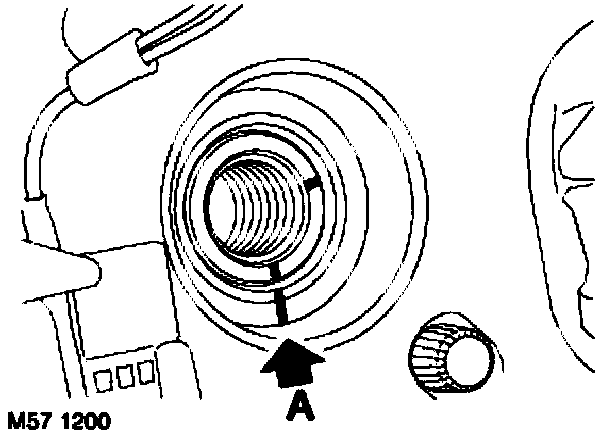 5. LHD vehicles: With the wheels in the straight ahead position, the bottom timing mark on the steering column must be aligned with the steering wheel mark, see illustration above.