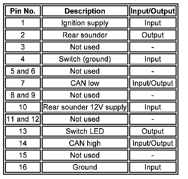 ^ The rear sounder will emit an error tone for 3 seconds at a frequency of 1500Hz if a fault is detected with the rear sensors, the switch, the LED in the switch or if there is a CAN bus error.