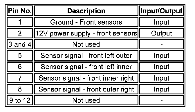 ^ The front sounder will emit an error tone for 3 seconds at a frequency of 1500Hz if a fault is detected with the front sensors or the rear sounder develops a fault.