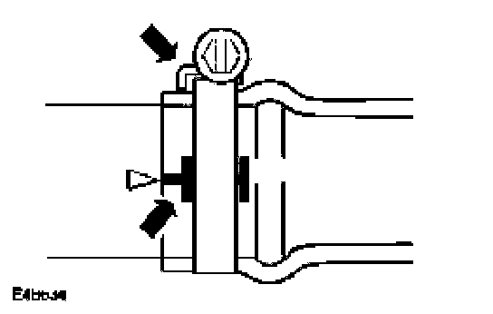 Oetiker clips may be removed by bending the tag (arrowed) and releasing the free end of the clip. Clips must not be reused. When fitting new clips, ensure clip is positioned on hose before tightening and ensure that when clip is tightened, the tag is located in the longitudinal slot in the free end of the clip (arrowed in illustration).