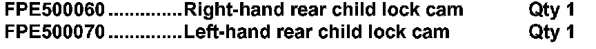 The child lock cam on the rear door latch is now available as a serviceable part.