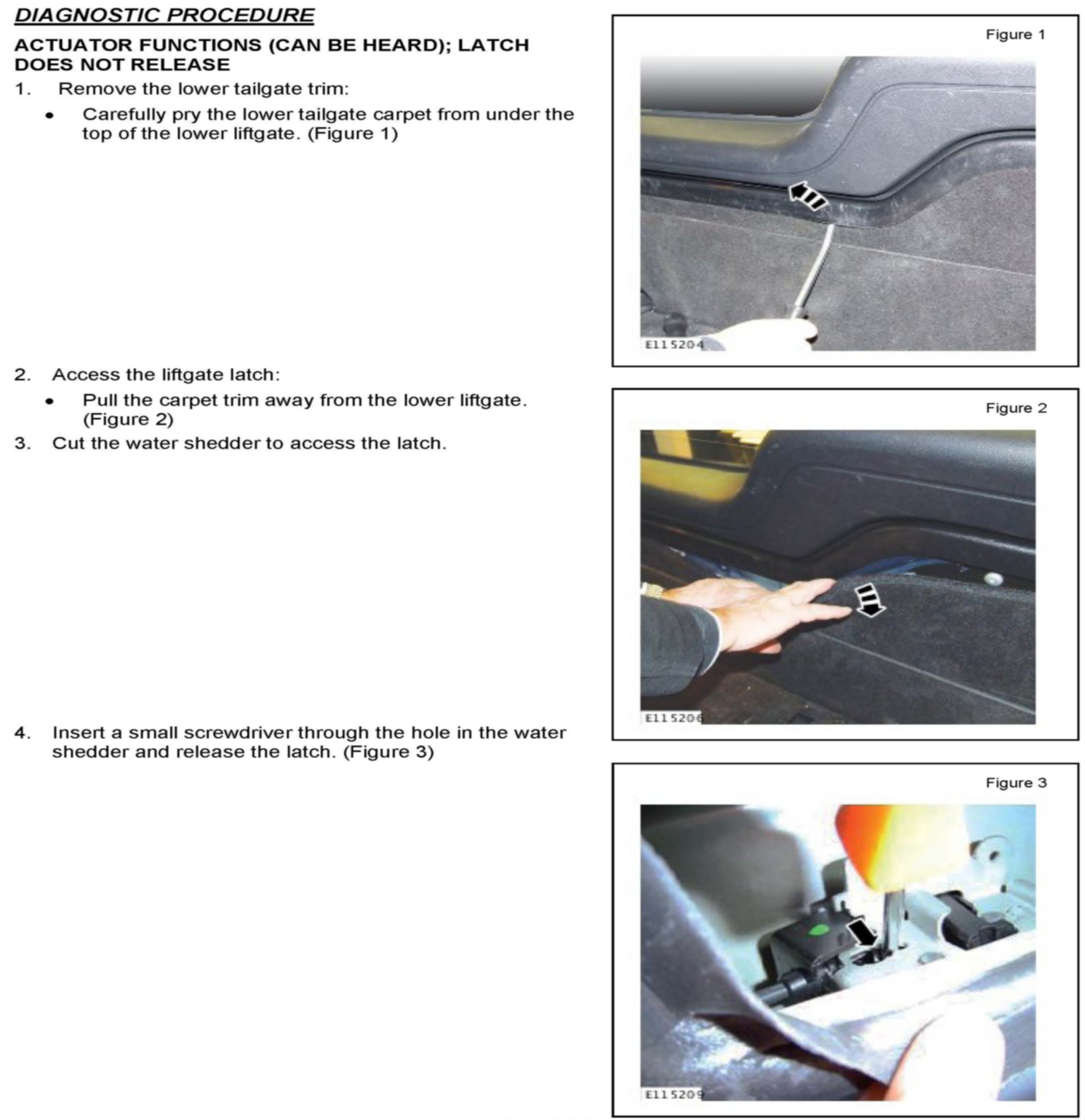 Action: In the event of a customer concern of any of the above, refer to the Diagnostic Procedure outlined below to follow a structured repair process to diagnose the liftgate latch.