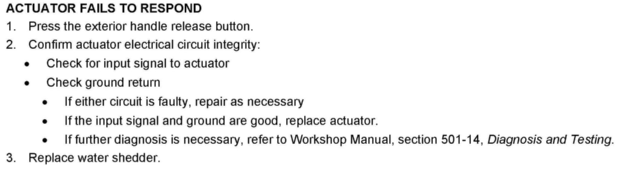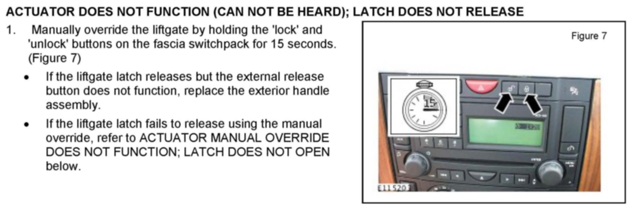 ^ Actuator does not function (can not be heard); latch does not release