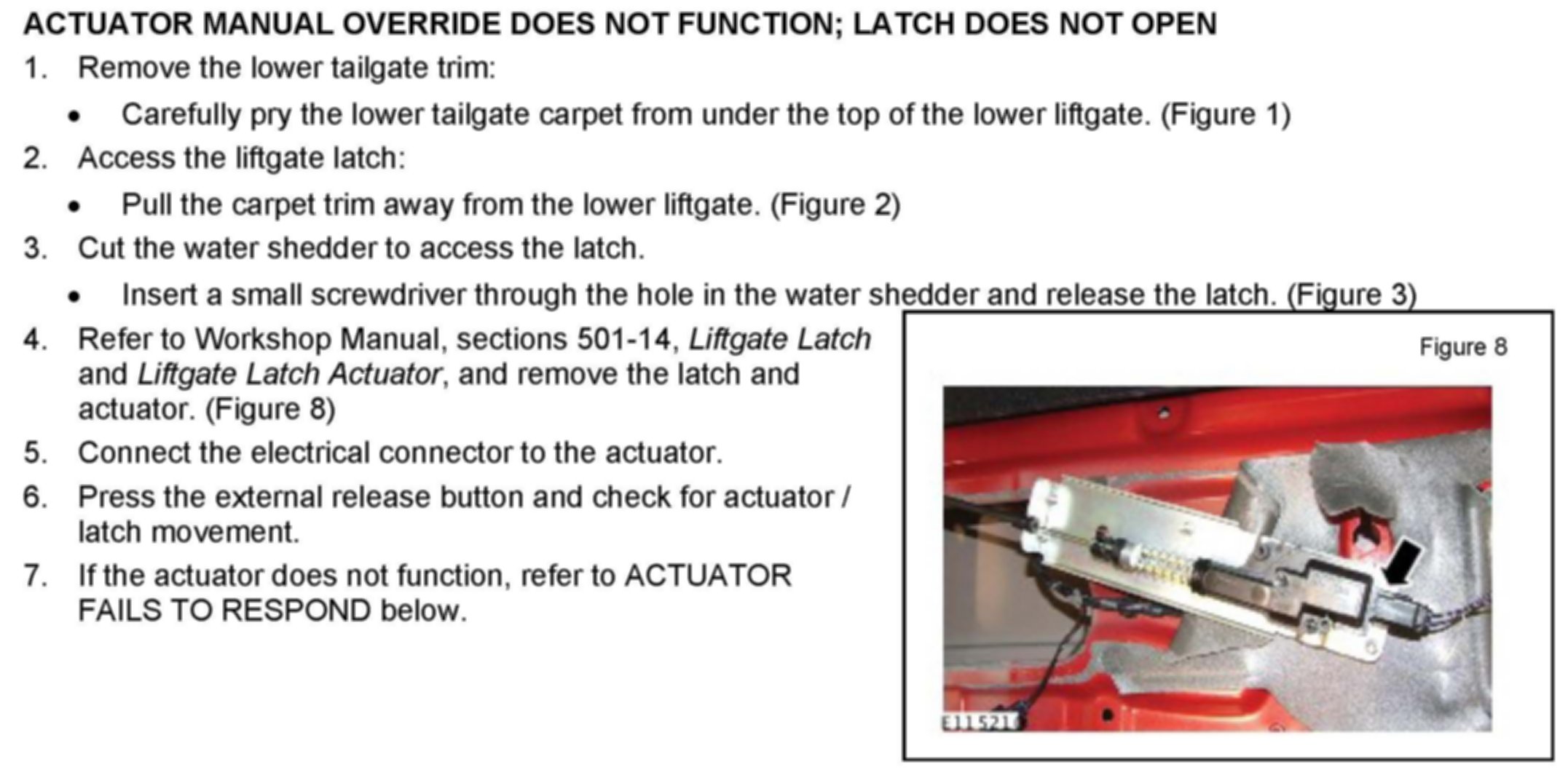 ACTUATOR MANUAL OVERRIDE DOES NOT FUNCTION; LATCH DOES NOT OPEN