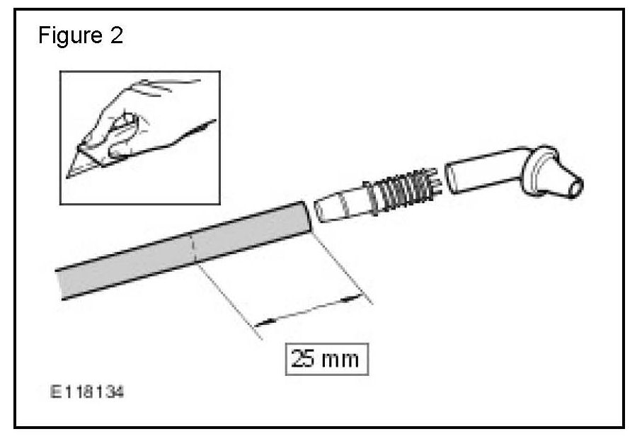 5. Trim 25mm (1.0 in) from the end of the existing roof opening panel drain tube. (Figure 2)