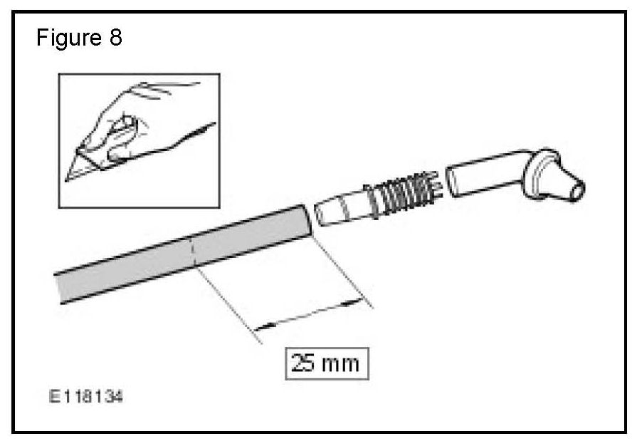 5. Trim 25mm (1.0 in) from the end of the existing roof opening panel drain tube. (Figure 8)