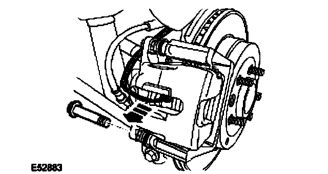 6. CAUTION: Do not allow the brake caliper to hang on the brake hose.