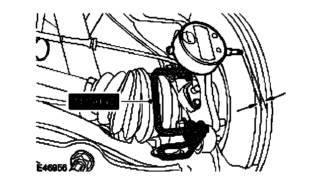 9. Using the special tool, install a dial indicator gauge to the brake caliper lower mounting.