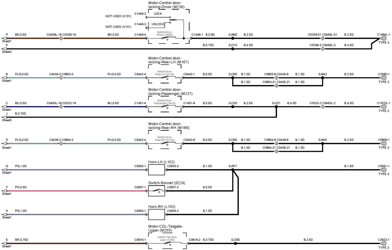 Locations: The location views for connectors and components depicted within these diagrams can be found via the connector's base number (i.e. C0570) at Vehicle/Locations/Connectors. Connector Locations