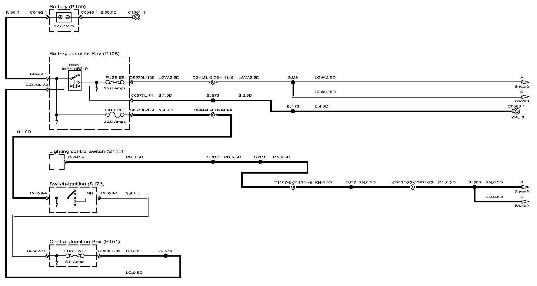 Locations: The location views for connectors and components depicted within these diagrams can be found via the connector's base number (i.e. C0570) at Vehicle/Locations/Connectors. Connector Locations