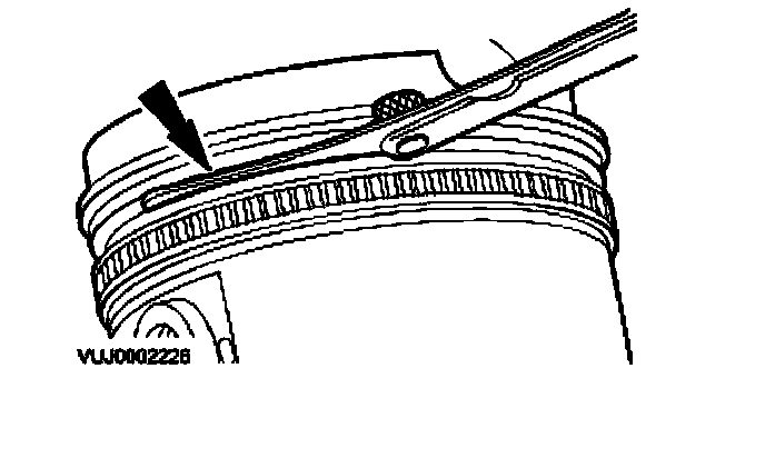 Piston Ring-to-Groove Clearance1. NOTE: The piston ring must protrude from the piston groove. To determine the piston ring clearance, insert the Feeler Gauge right to the back of the groove, behind the wear ridge.