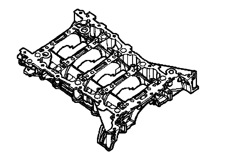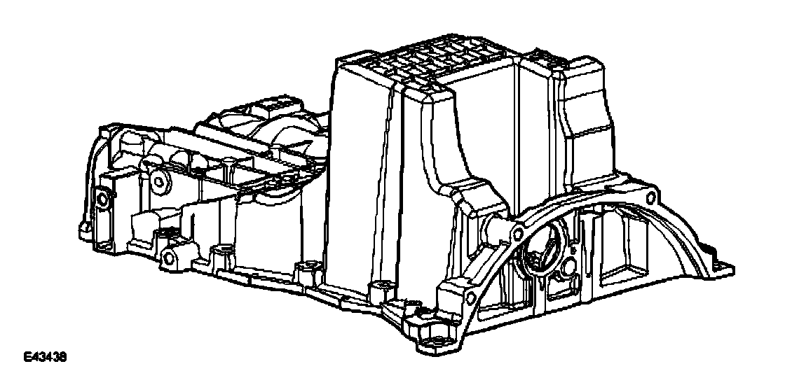 The aluminum alloy structural sump is bolted to the bedplate. A windage tray attached to the underside of the bedplate isolates the oil pan from the disturbed air produced by the rotation of the crankshaft, to prevent oil aeration and improve oil drainage. A rubber plug at the rear of the structural sump seals the port that provides access to the torque converter securing bolts. The engine oil drain plug is located at the front right corner of the oil pan.