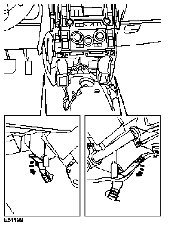 ^ Release the wiring harness retaining clip.