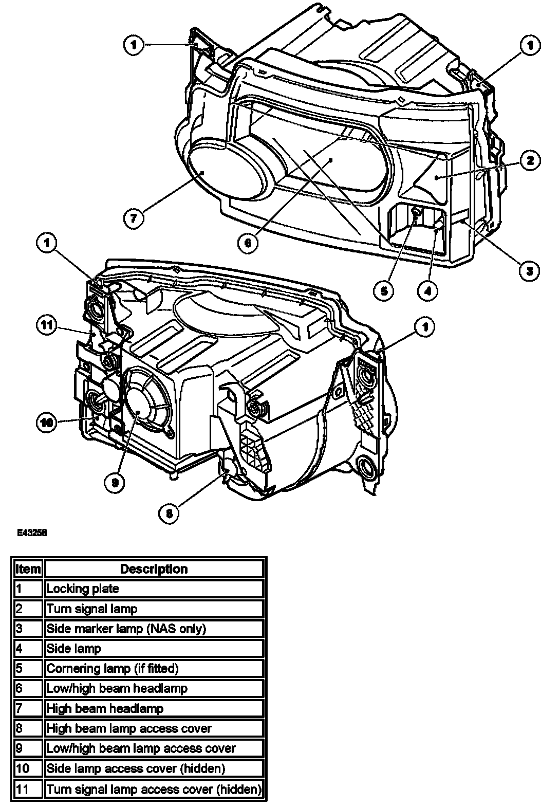 NOTE: The cornering lamps are not fitted to NAS market vehicles