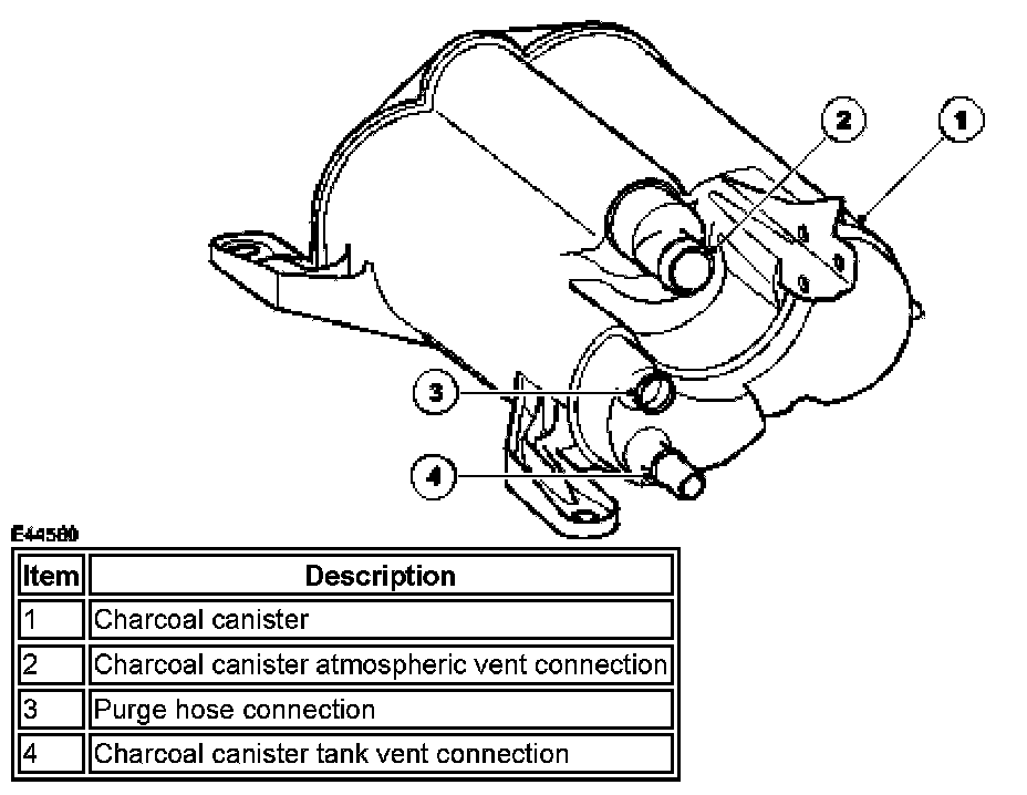 The canister has three ports which allow for the attachment of the atmospheric vent hose, the purge hose and the tank vent hose. On NAS vehicles the atmospheric vent hose connection allows for the attachment of the DMTL pump.