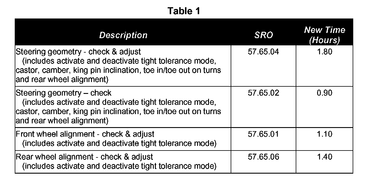 ^ Labor operation 60.90.18 should not be claimed as a separate SRO on any warranty claim where the geometry has been checked or adjusted and claimed by a Land Rover Retailer.