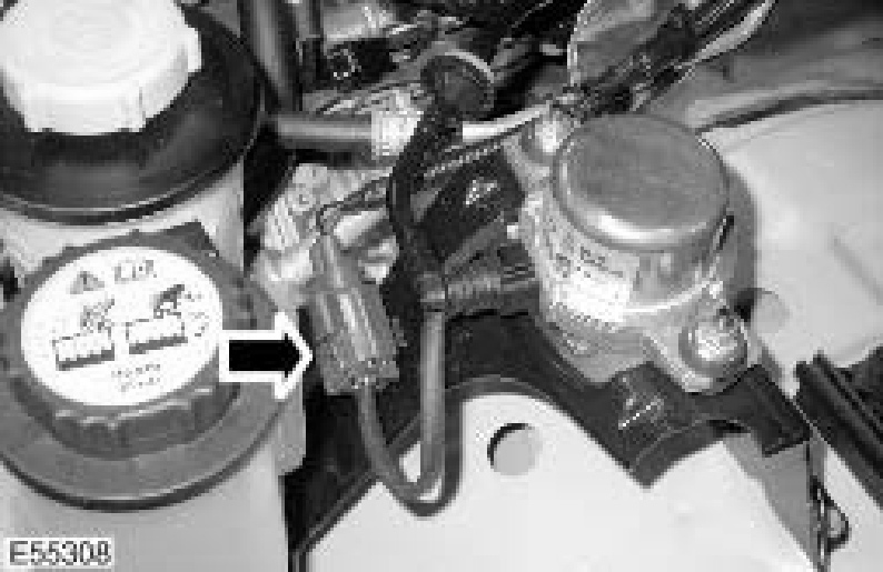 7. LH side: Disconnect the coolant expansion tank level switch electrical connector.