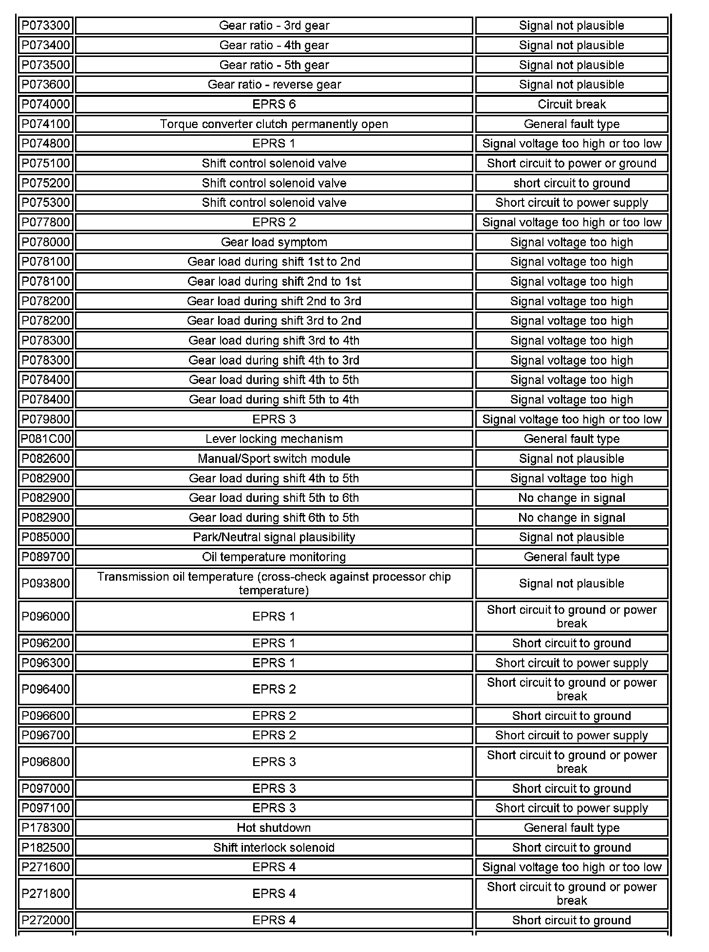 In the event of an engine speed or torque signal failure, the transmission will adopt the electrical limp home mode with the transmission operating in a fixed gear.