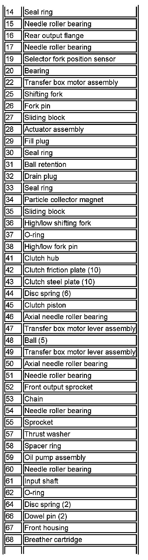 The unit is located under the vehicle and is mounted on the cross-member, behind the transmission. The unit is identical for all engine derivatives.The transfer box receives a torque input from the transmission output shaft, which is passed through the unit to two outputs for the front and rear drive shafts.