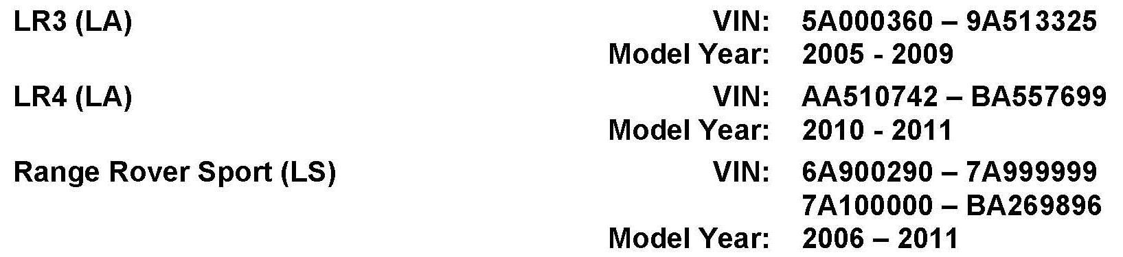 AFFECTED VEHICLE RANGE: