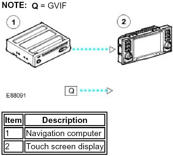 The GVIF bus is a Sony proprietary network for the transmission of video between a transmitter device and a display device.In this instance it is used to transmit navigation graphics from the navigation computer to the Touch Screen Display only.