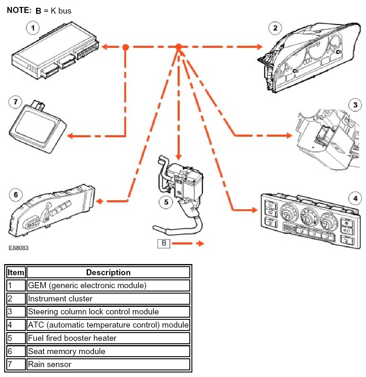 The K bus is a Land Rover corporate network connected between control modules of the 'body' systems.