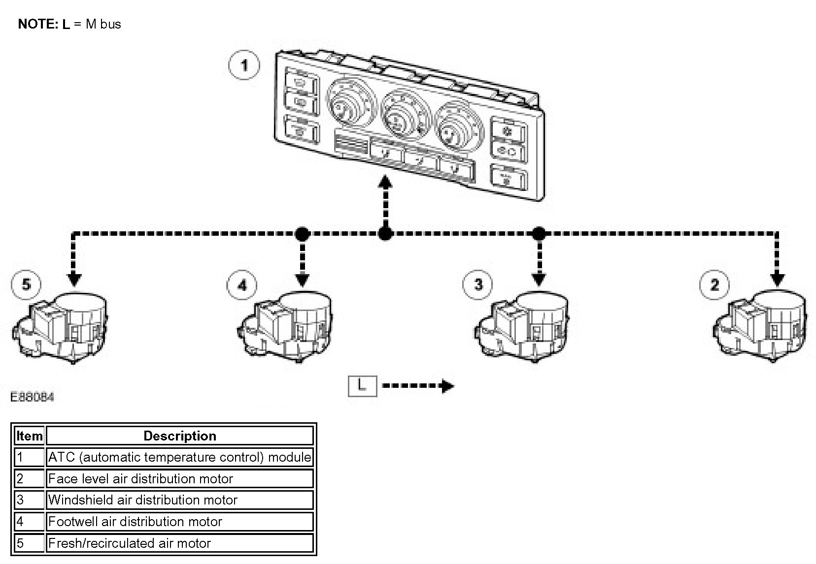 The M bus is a Land Rover corporate network connected between the ATC (automatic temperature control) module and motors on the heater assembly.