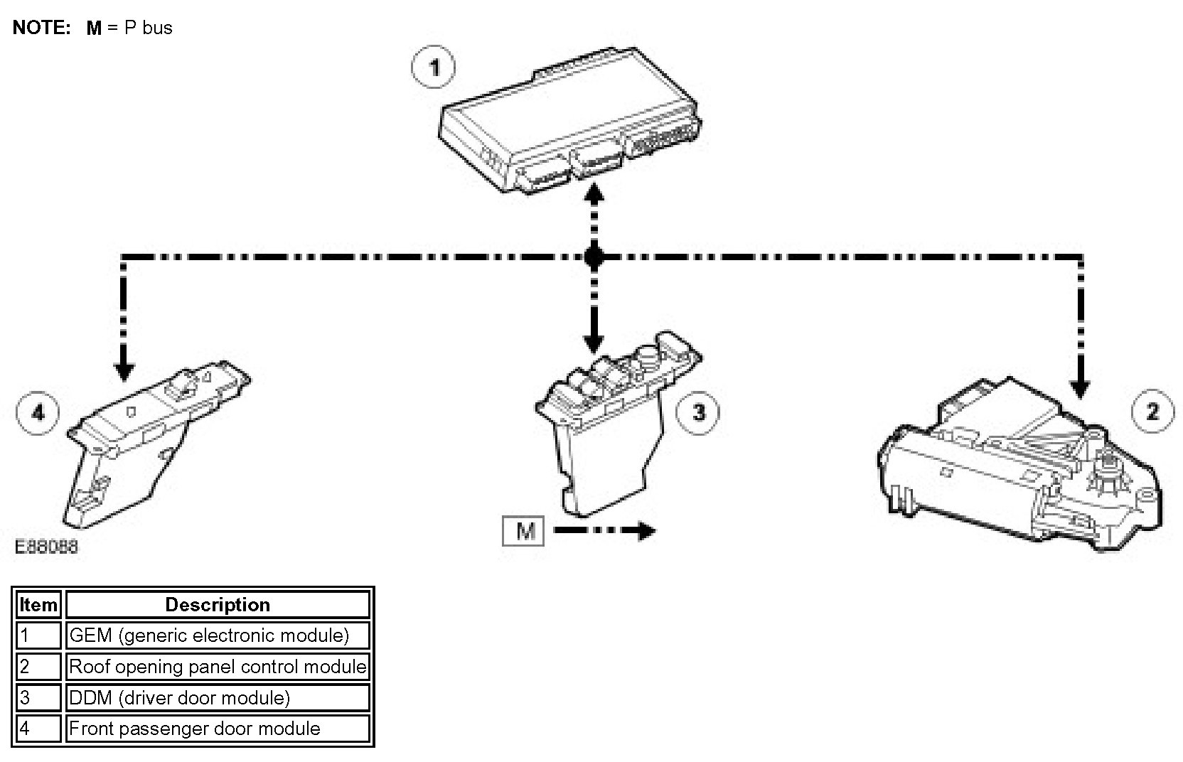 The P bus is a Land Rover corporate network connected between the GEM (generic electronic module) and 'peripheral' control modules.