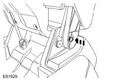 ^ Remove the floor console stowage compartment lid hinge pin LH bolt.