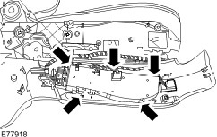 1. Carefully release the clip from behind the front seat base side trim panel.