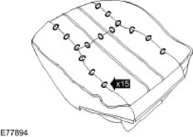 16. Remove and discard the 15 clips from the front seat cushion cover.