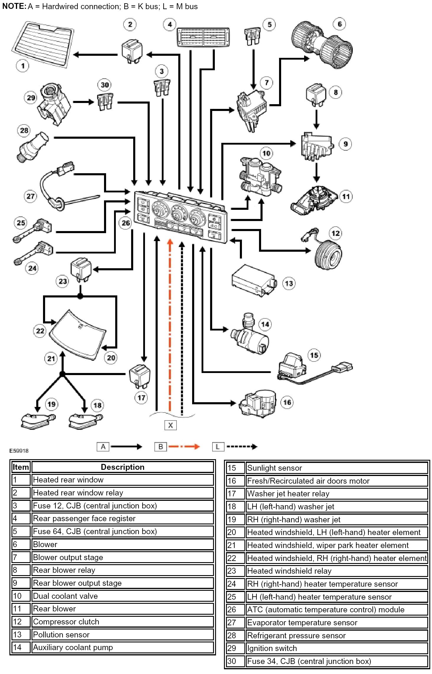ATC (automatic temperature control) module determines the open duration of the coolant valve and outputs the appropriate control signal.On the automatic system, separate values and output signals are generated for each coolant valve to produce the individual temperature control for the LH (left-hand) and RH (right-hand) sides of the cabin.