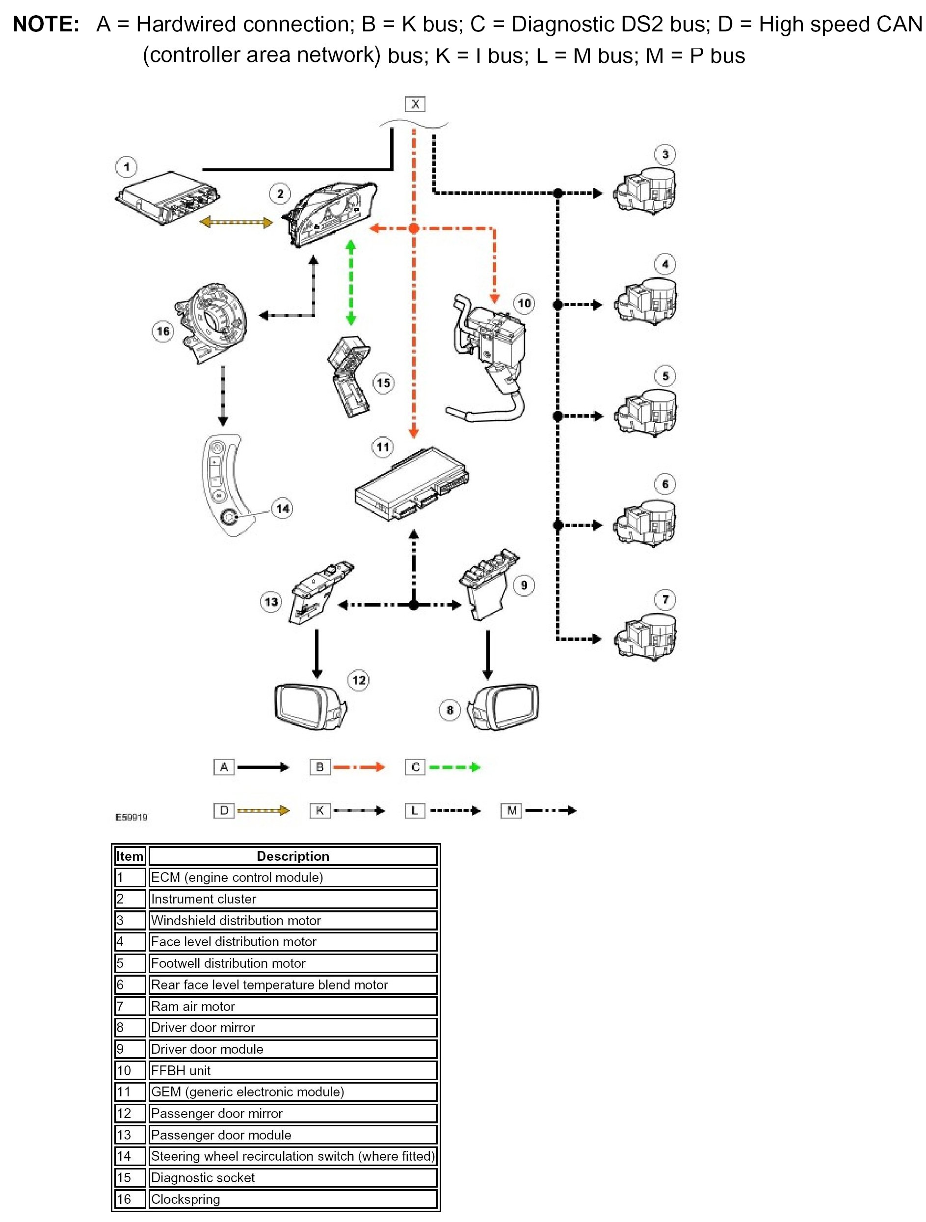 ^ The ambient temperature to the ATC (automatic temperature control) module and GEM (generic electronic module) on the K bus.