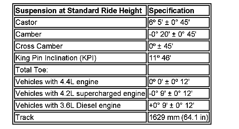 Vehicles with 4.2L Supercharged Engine -0° 9' ± 0° 12'