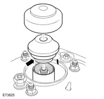 NOTE: Vehicles with high performance brakes have a damper fitted to the top of each front suspension air spring. The damper is secured with high strength thread adhesive and must be replaced if the air spring is renewed.