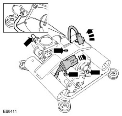 ^ Release the air suspension reservoir solenoid valve block, from the compressor mounting bracket.