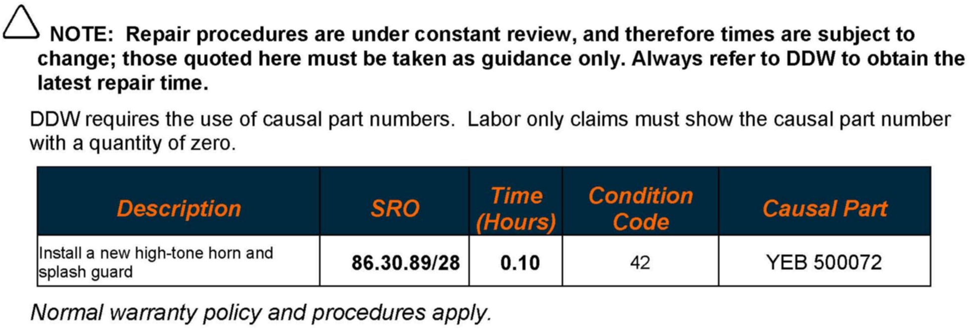 High-Tone Horn Sound Change - Repair Procedure