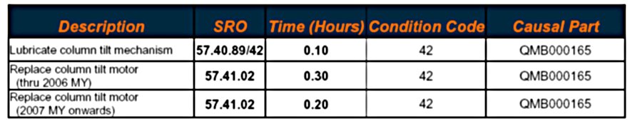 NOTE: Certain vehicles may be subject to Land Rover Service Action B028 "Steering Column Tilt Mechanism Upgrade". DDW and the latest issue of B028 should be reviewed for applicability prior to completing the Repair Procedure detailed in this bulletin.